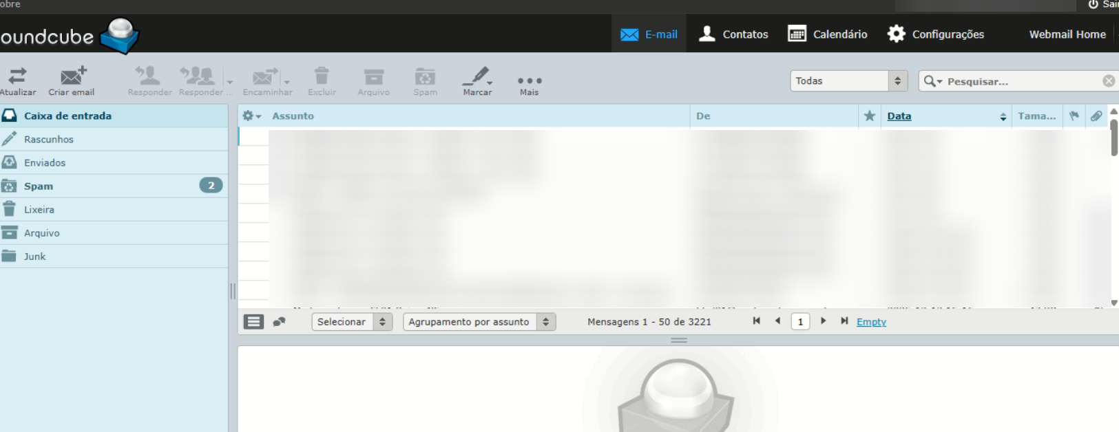 layout Desktop (lista ampla e visualização de mensagens abaixo)